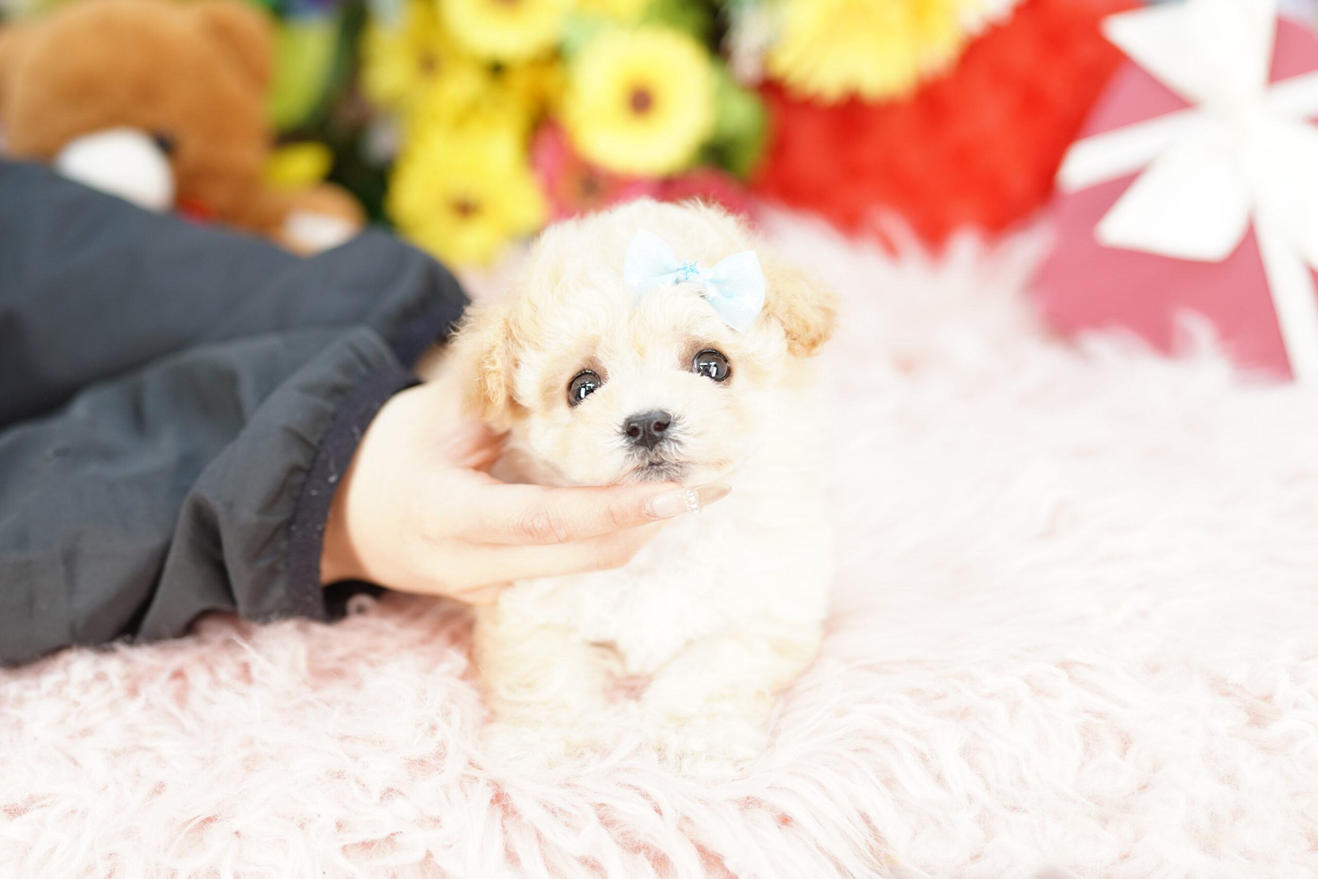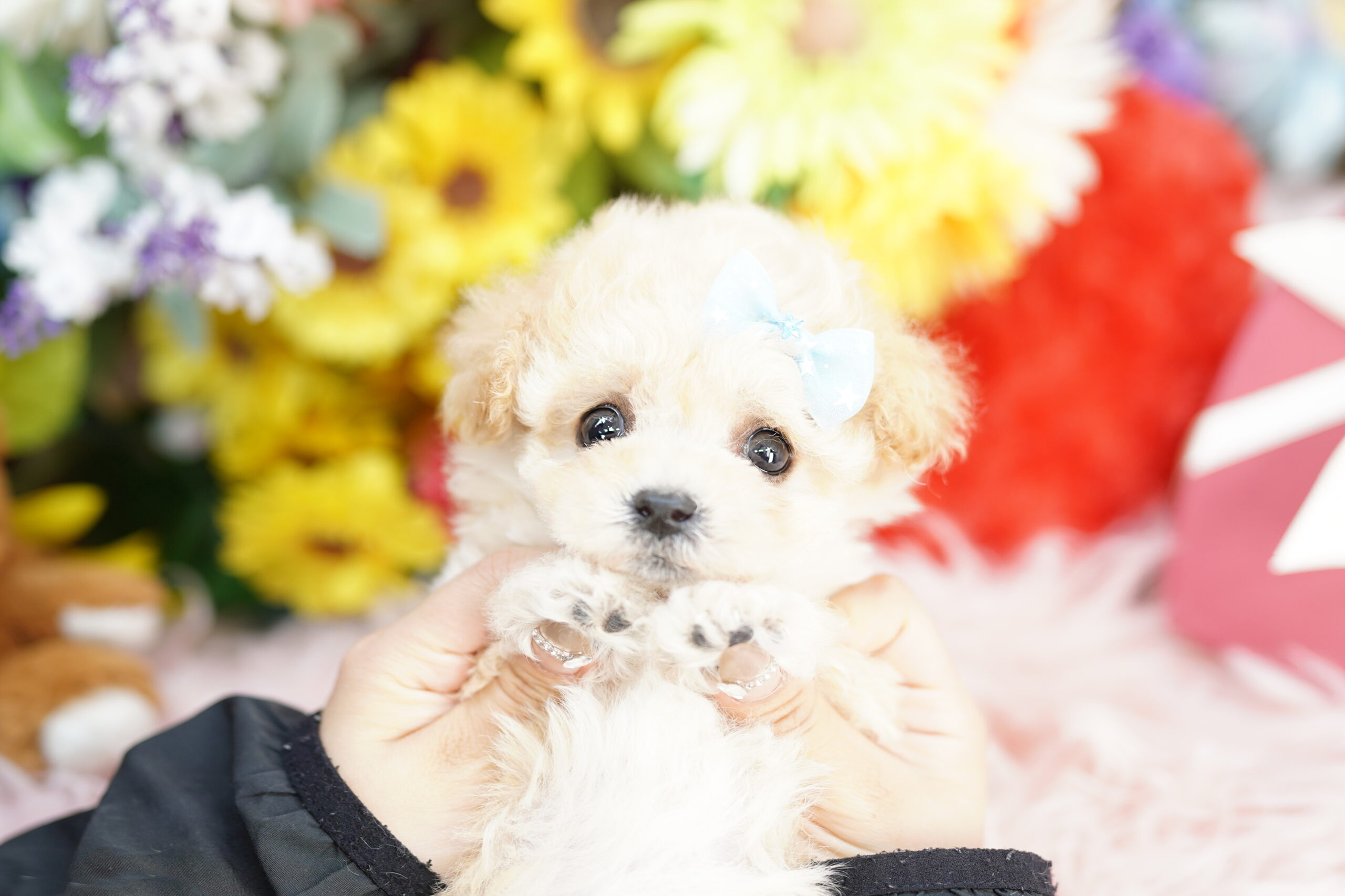 💛 ティーカップサイズのトイプードルのパパとビションフリーゼの可愛いからママから元気に生まれてきました💕 両親の良いとこ取りのとっても可愛いビションプーの男の子です🎀