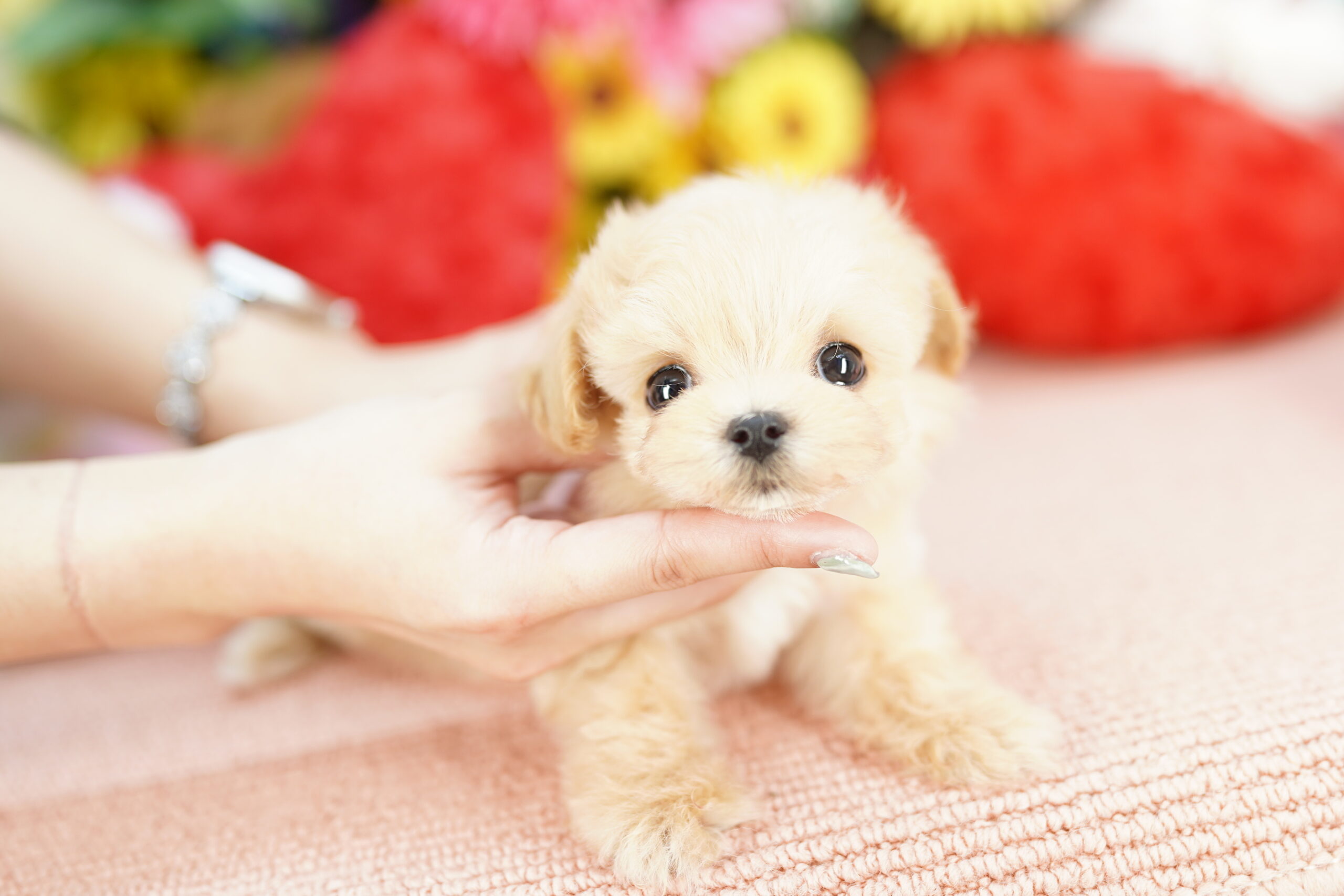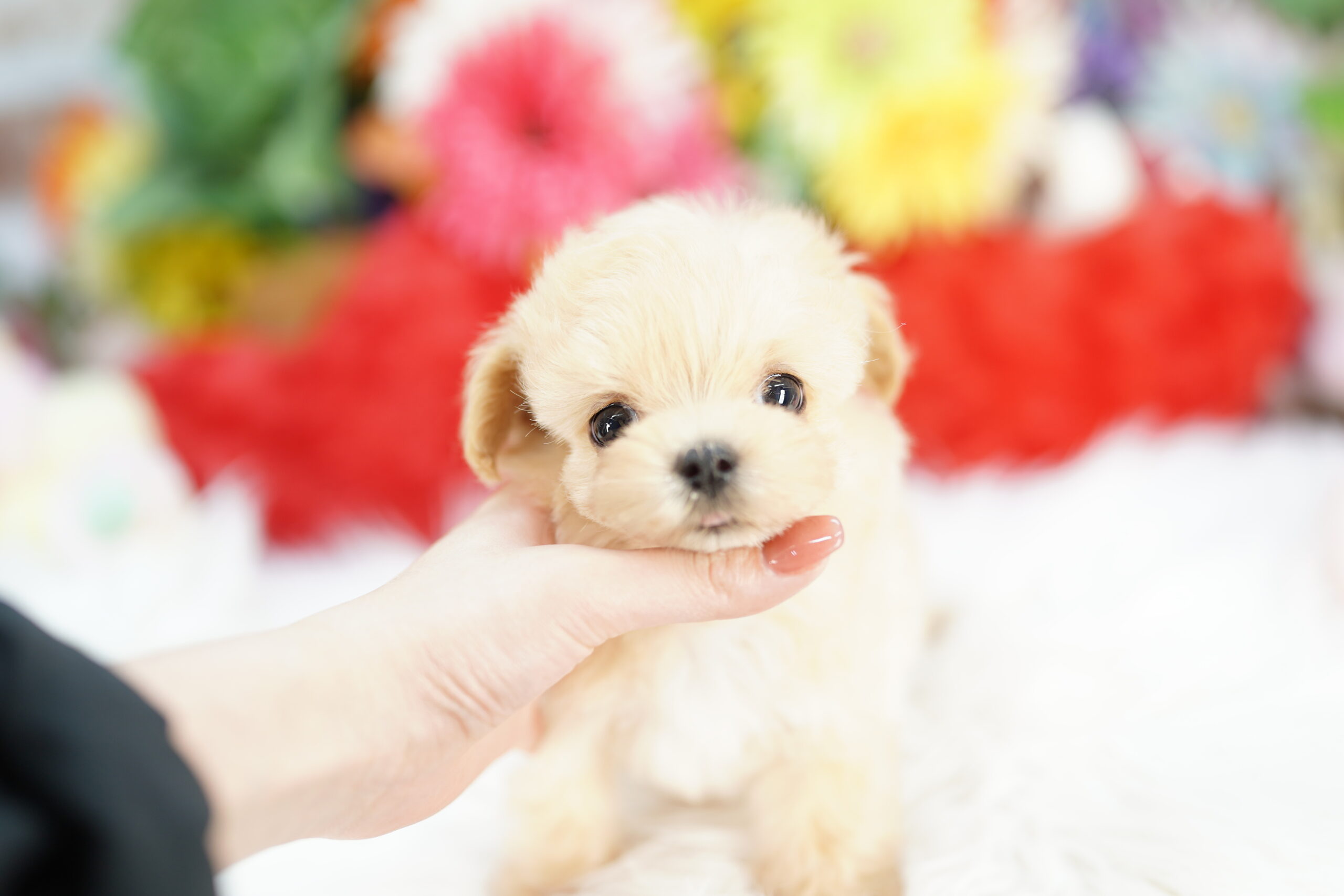💛 マルチーズのパパとトイプードルのママから元気に生まれてきました❗ つぶらな瞳がチャーミングなマルプーくん👑
